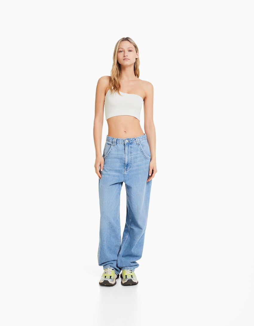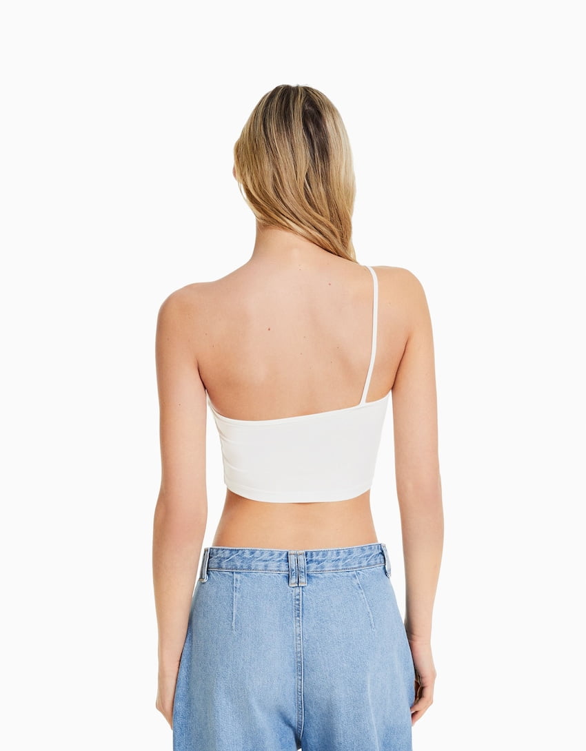 Asymmetric crop top with strap