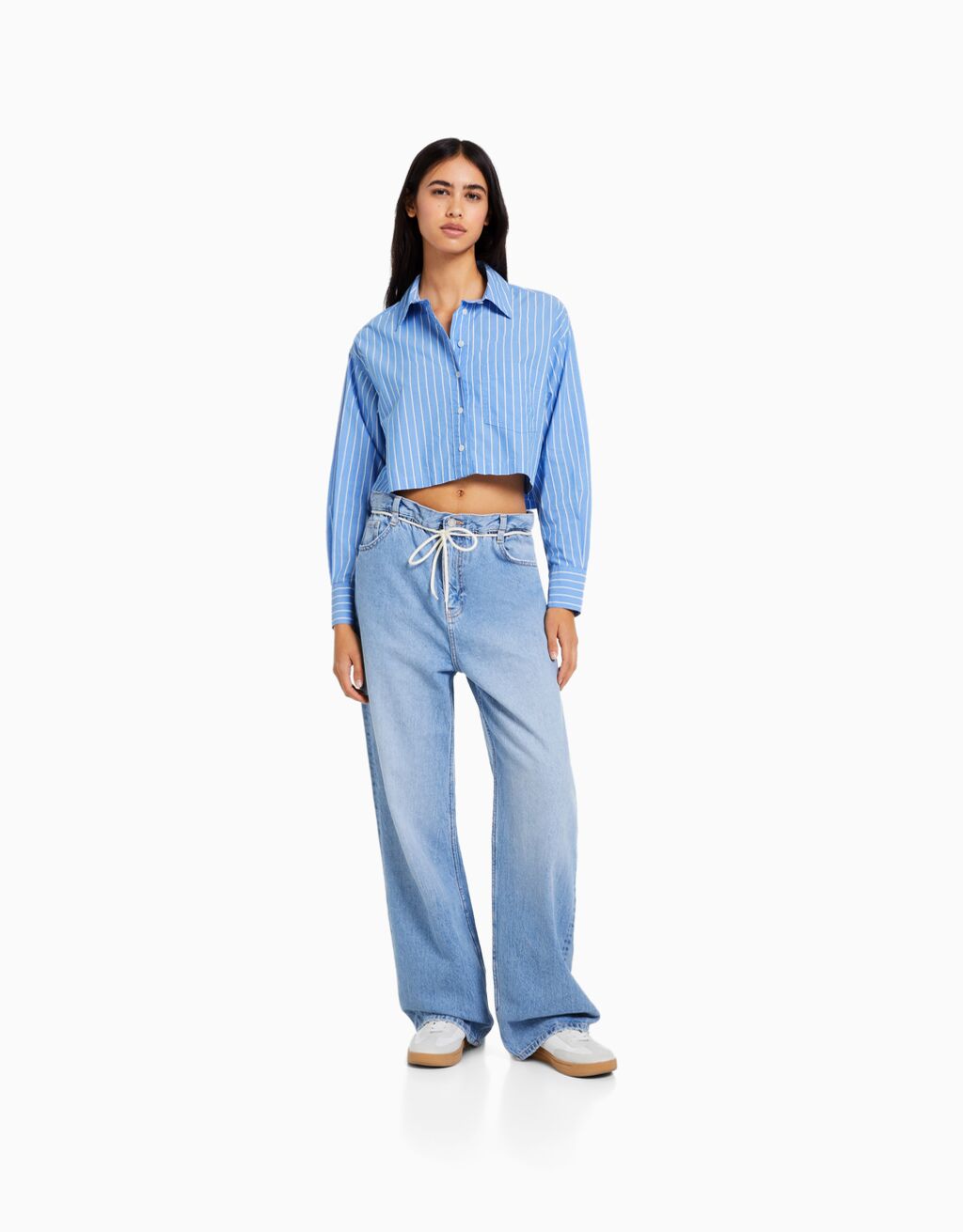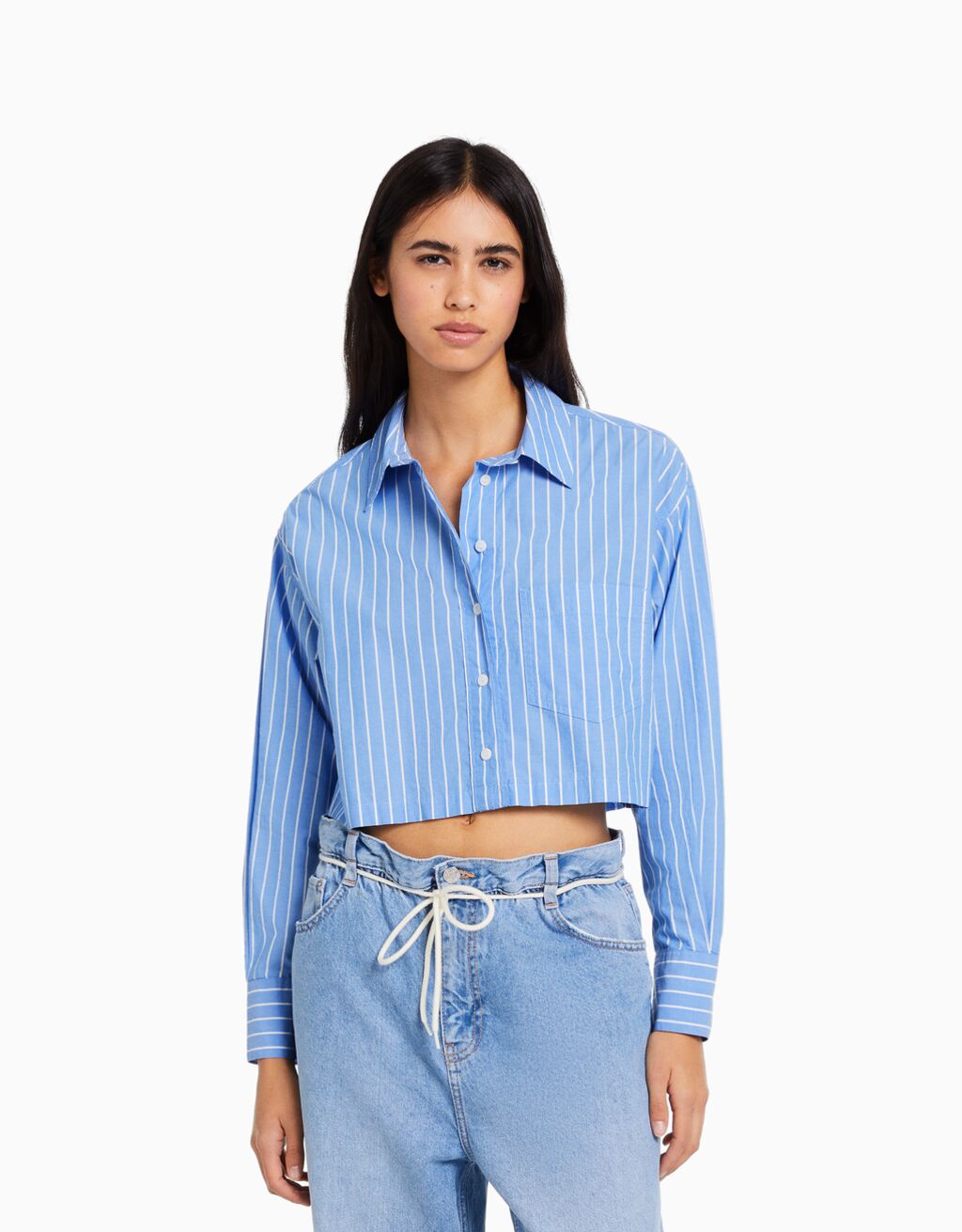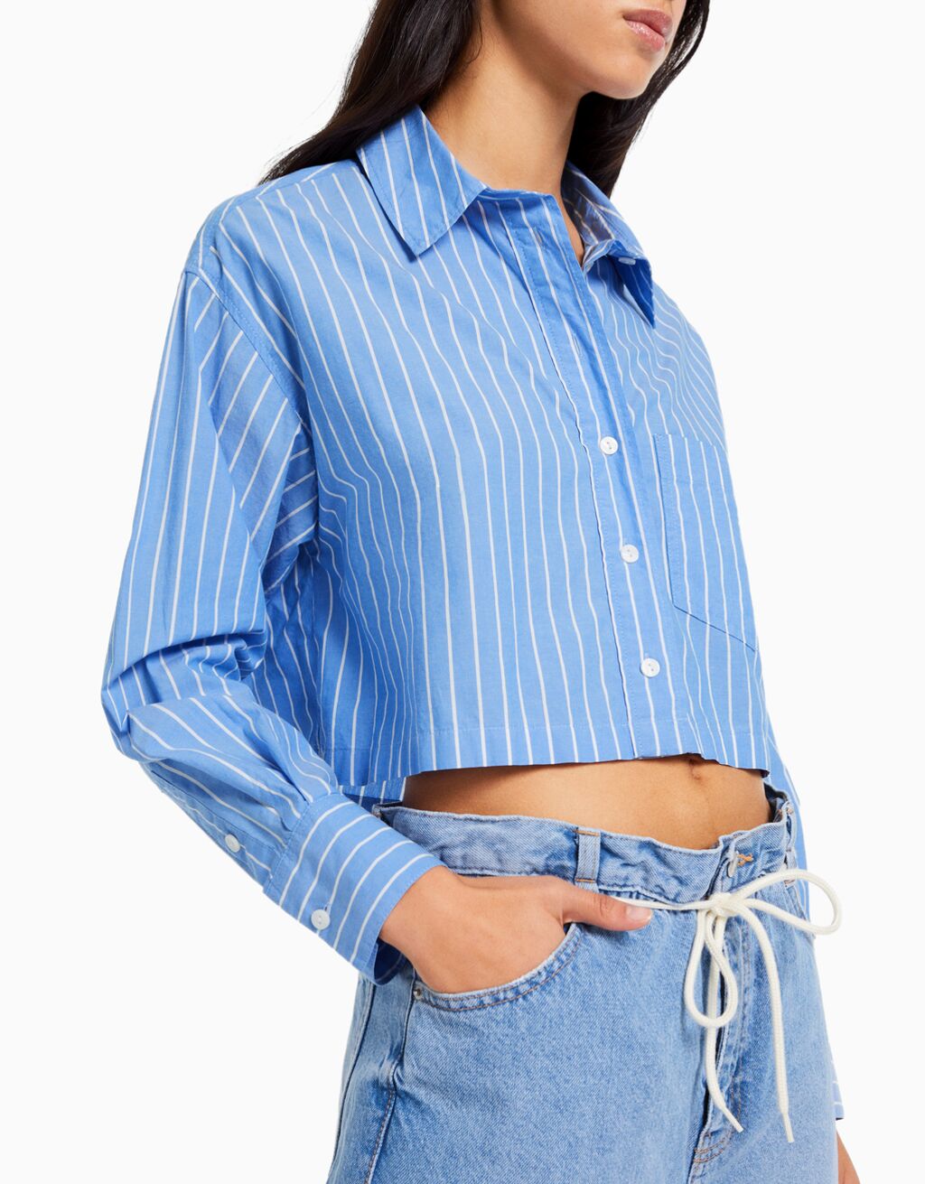 Long sleeve cropped poplin shirt